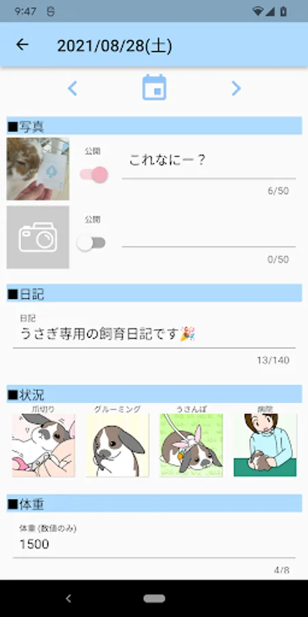 Rabbit Square"" is a breeding diary to record your precious days with rabbits.
