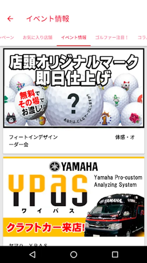 It is possible to check “when” and “where” where “store original mark same day finishing”, where the mark or name can be printed on the ball on the spot, club maker fitting, club creation events, etc. will be held.