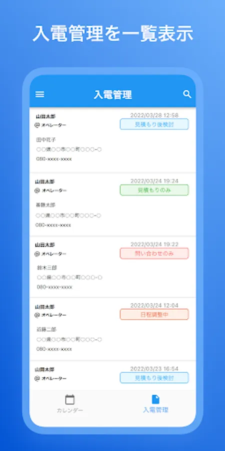 ・ Push notification of new incoming call report