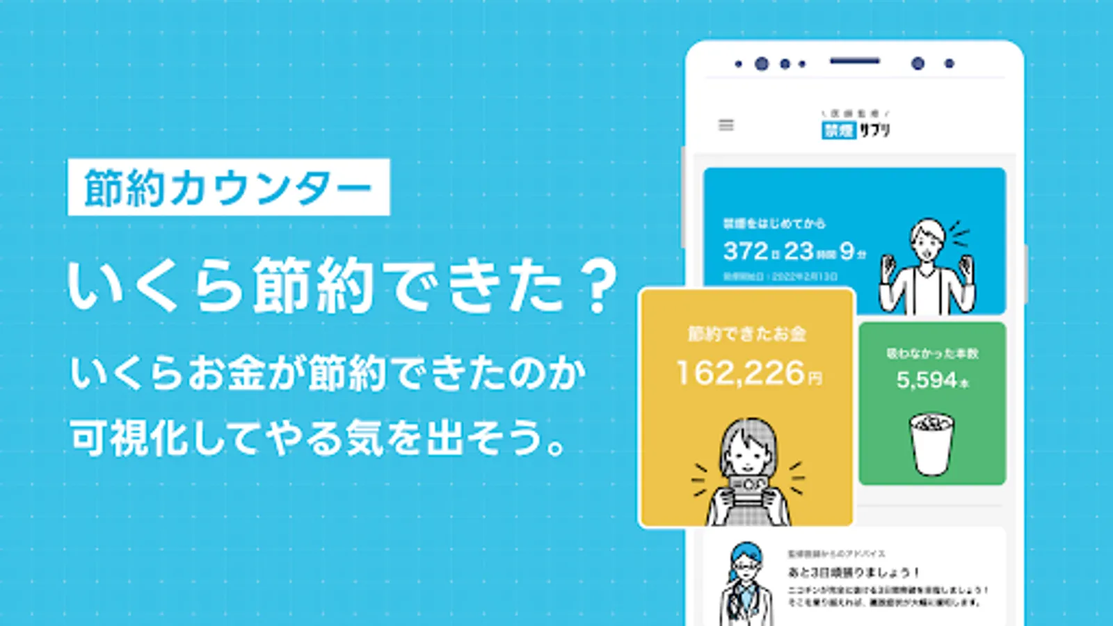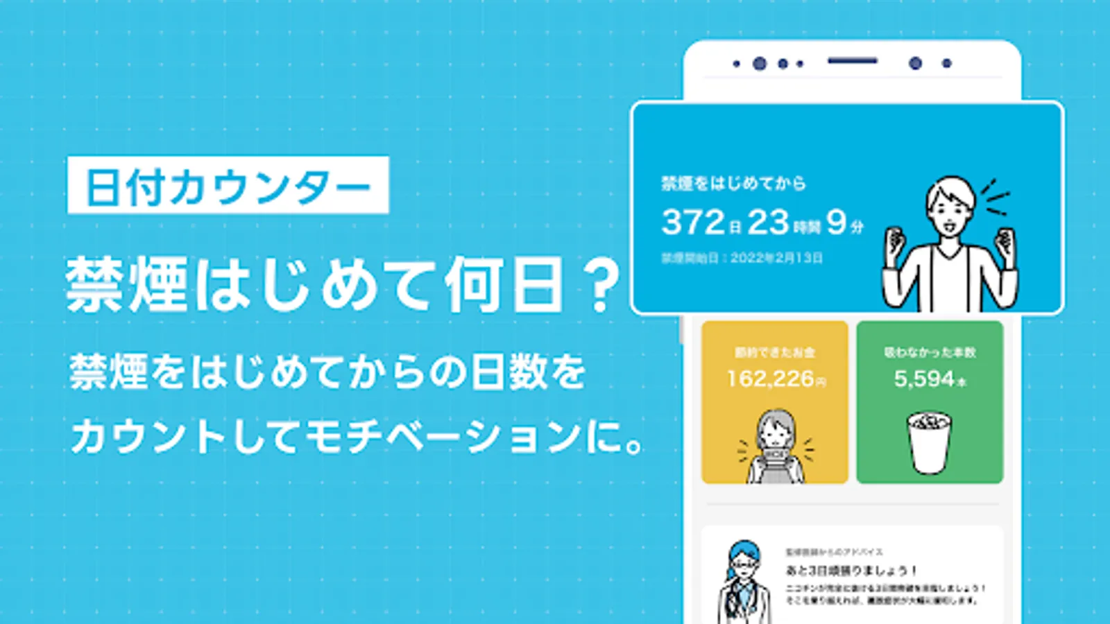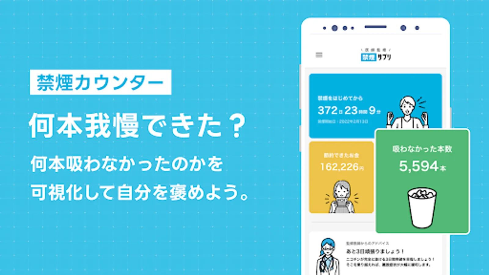 With smoking cessation supplements, you will receive advice according to the elapsed time. Advice to relieve anxiety and stress about quitting smoking is sent to people who have just started smoking cessation. In addition, for those who continue to quit smoking, various information such as the effects of quitting smoking and the impact on health after quitting will be provided.