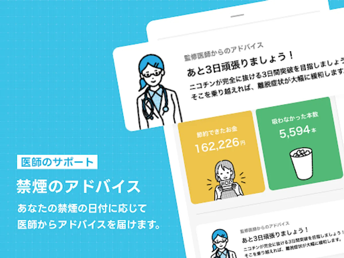 Quit Smoking Supplement is an app for continuing to quit smoking. Concentration and continuation are required to quit smoking, but with this app you can easily continue and make it a habit. Information and advice on quitting smoking will be delivered from the doctor, so even those who are not confident about quitting can work with peace of mind.