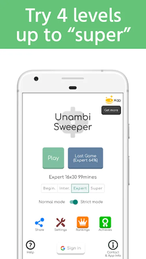 ・Easy(9x9), Intermediate(16x16), Expert(16x30), Super(24x48) mode