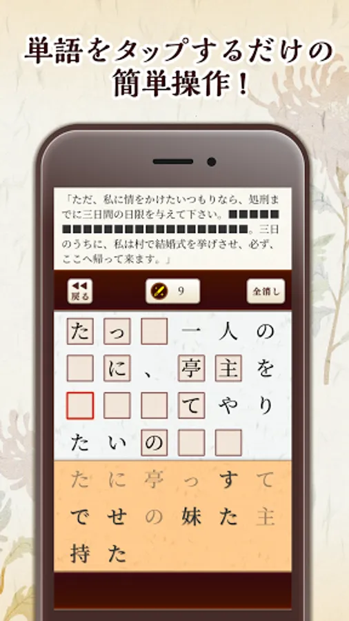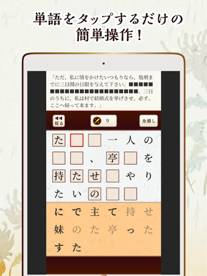 The operation is very easy, just tap a word. There are also deletes, erasures, hints, and more.