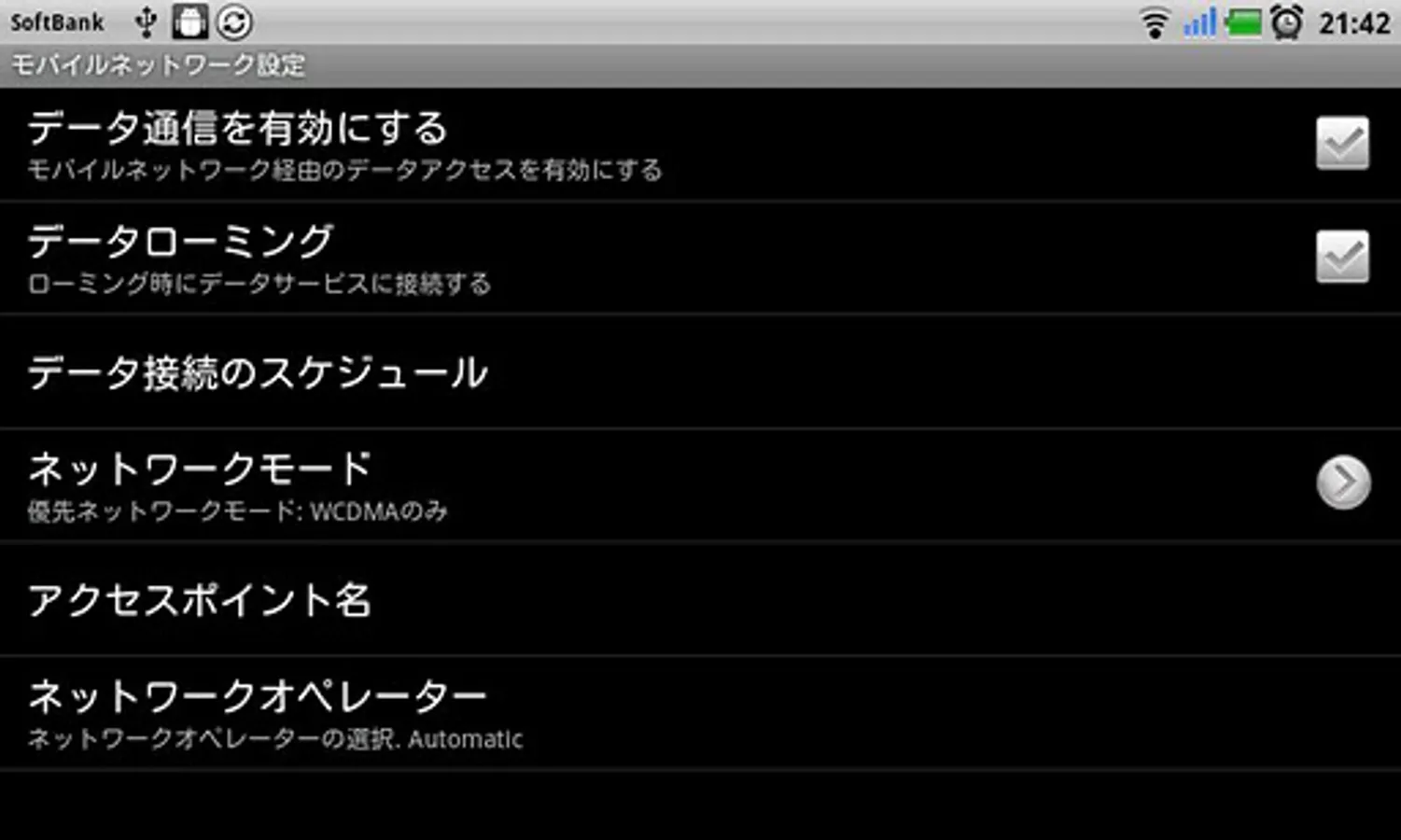 [ Settings ]→[ Wireless & networks ]→[ Mobile networks ]→