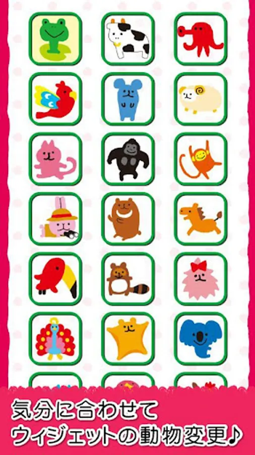 When you tap the widget all 21 species from your favorite animal is easy to install on the screen to choose a selectable ♪ favorite animal!