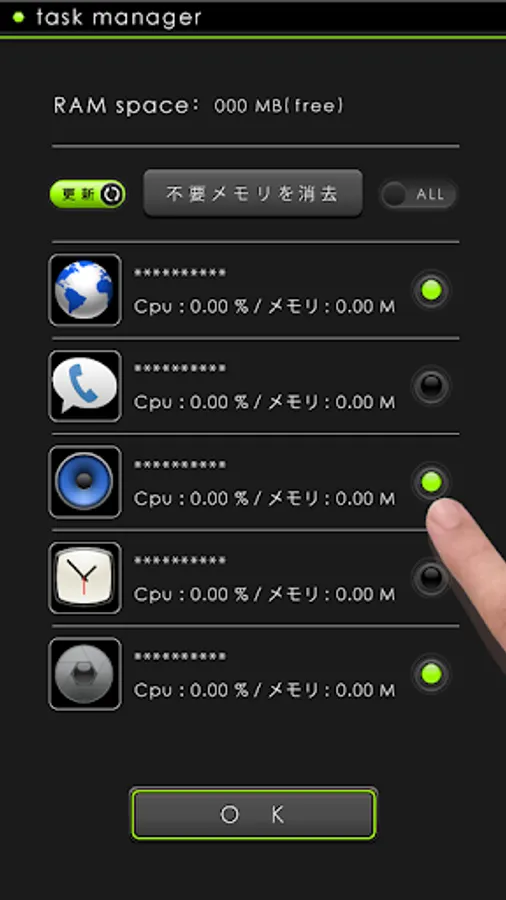 You can end one-tap memory accumulated when you tap on the button "" end the unnecessary memory !"" Smartphone becomes crunchy easily by using the "" task killer "" in the details if you feel movement is ~ Na slowed recently , it also leads to long-lasting battery !