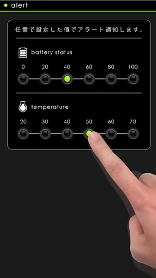 Notice to reach temperature and battery level that you have set up and use the alert function ! They will be notified with an alert in advance , helps to minimize that "" there , there are no more battery ! "" Is!