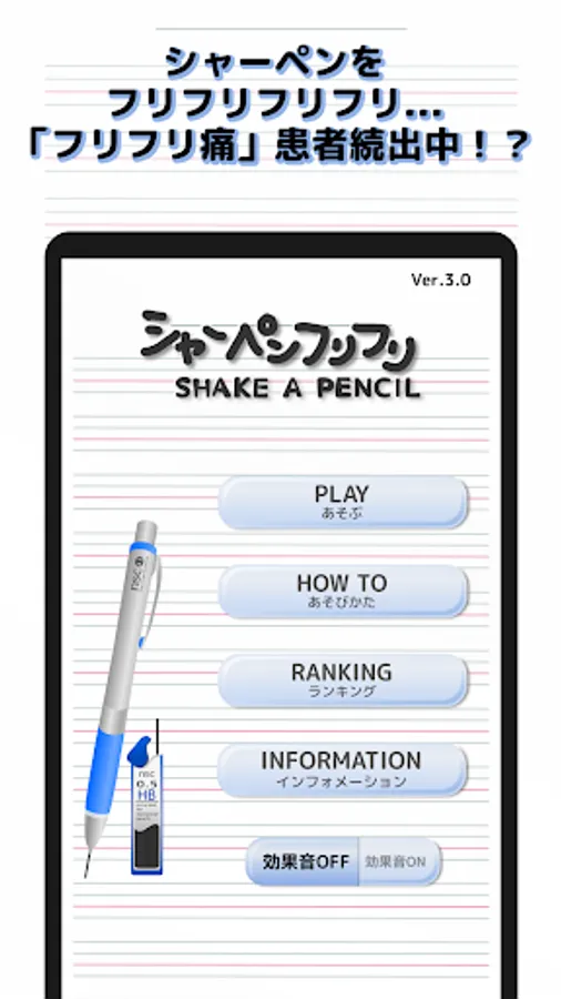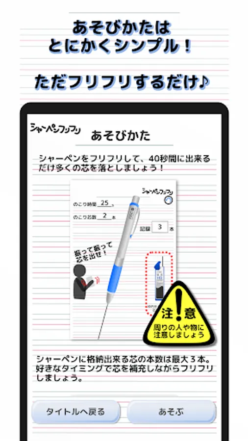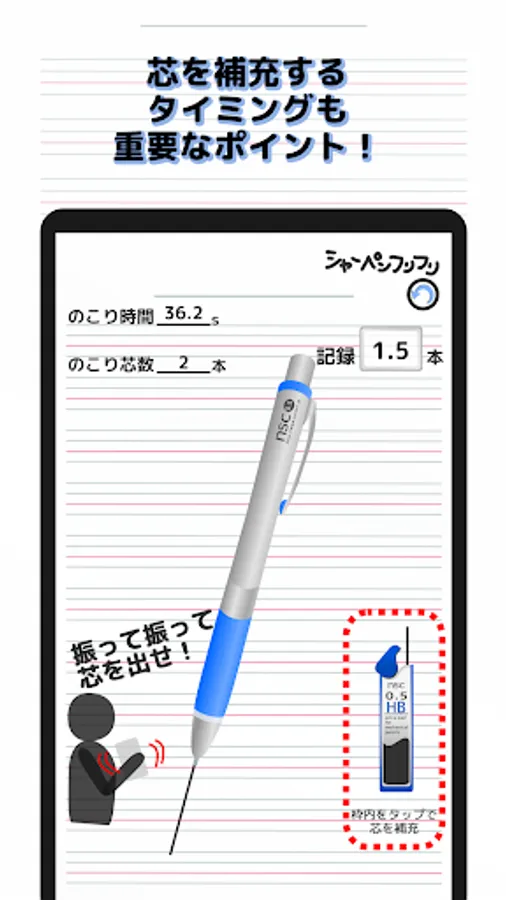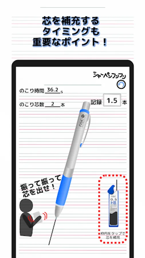 It is a game application that competes for how many lead can be dropped within the time limit by flicking a mechanical pencil (smartphone).