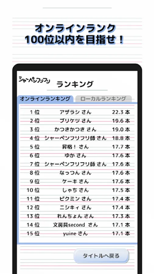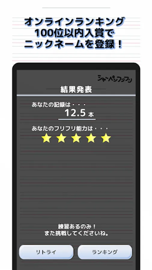 If you are among the 100 online rankings, the "number" you dropped and the "registered name" you will enter at that time will be posted. Let's do our best to aim for 1st place!