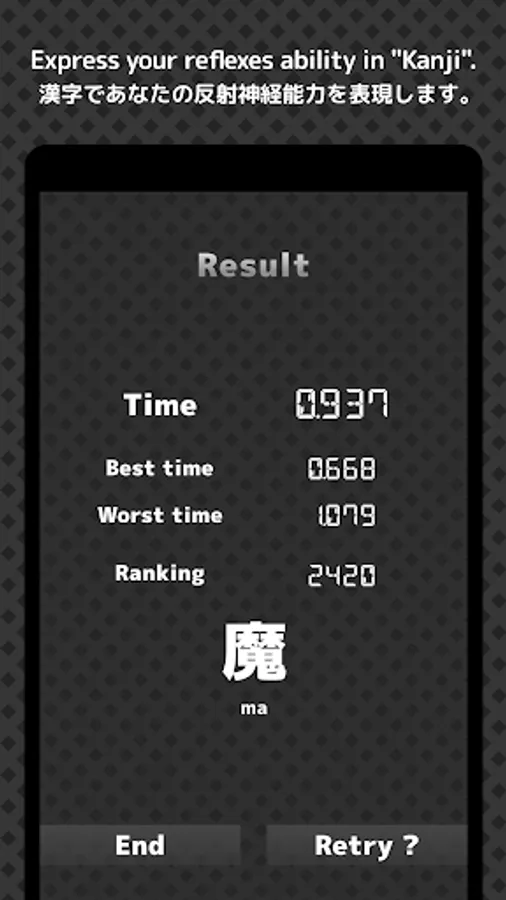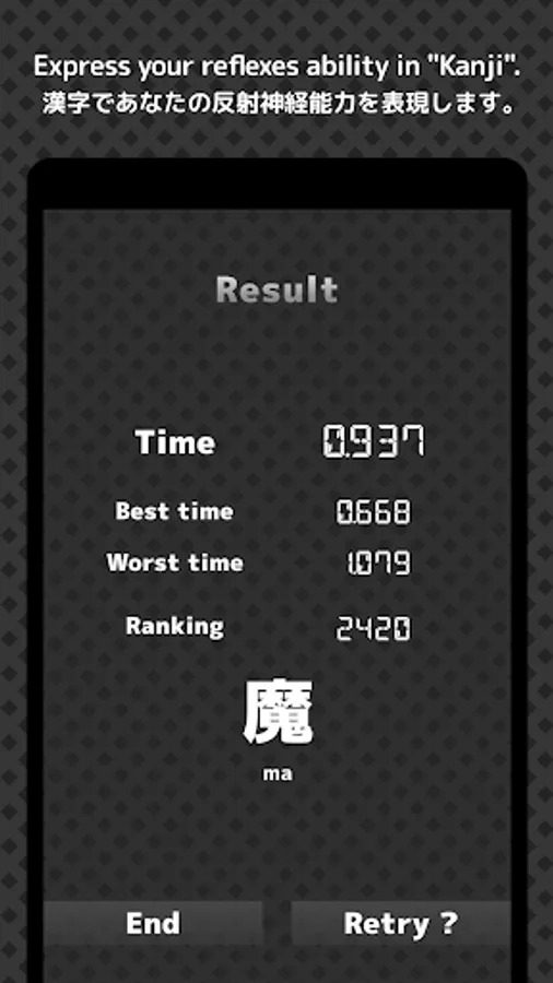 -After the game ended, you can see your SCORE and EVALUATION(Japanese KANJI).