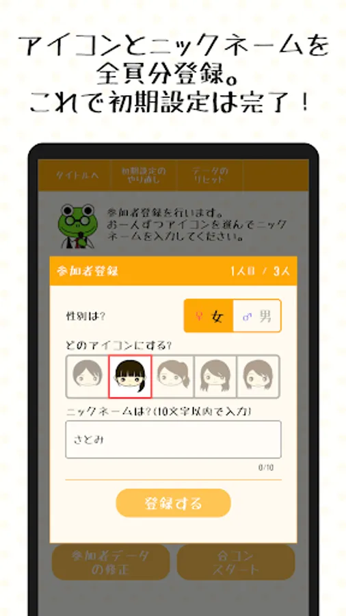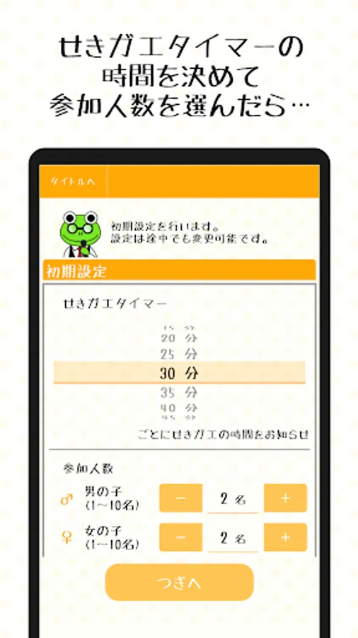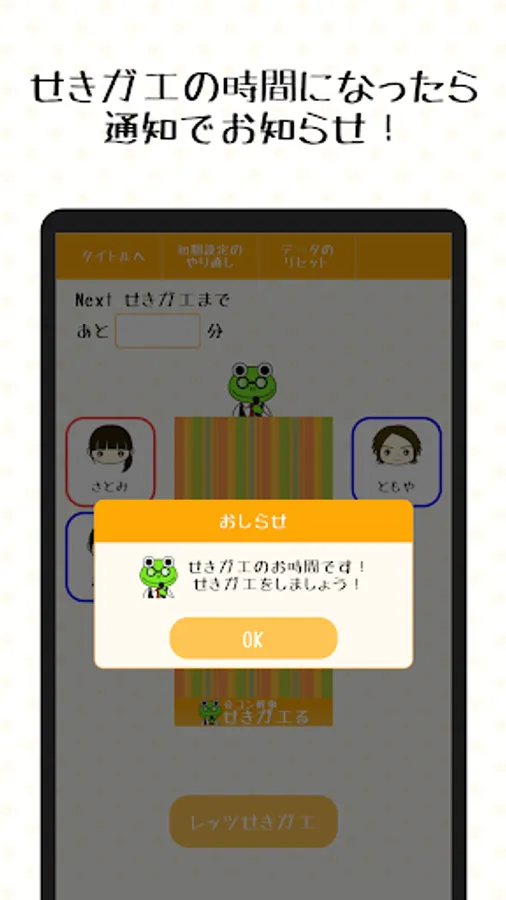 Specify the cough timer and the number of participants, and register the nicknames and icons of all participants.