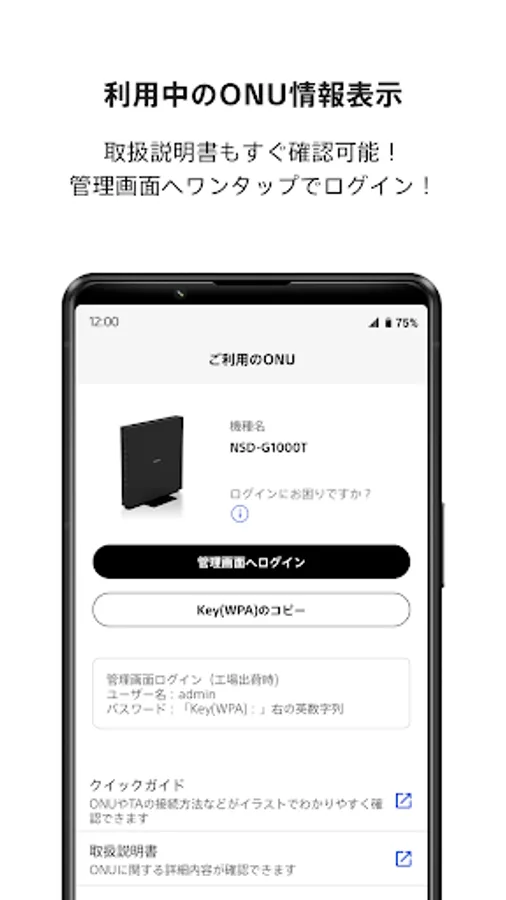 ― You can connect your smartphone to Wi-Fi by reading ONU's QR code.