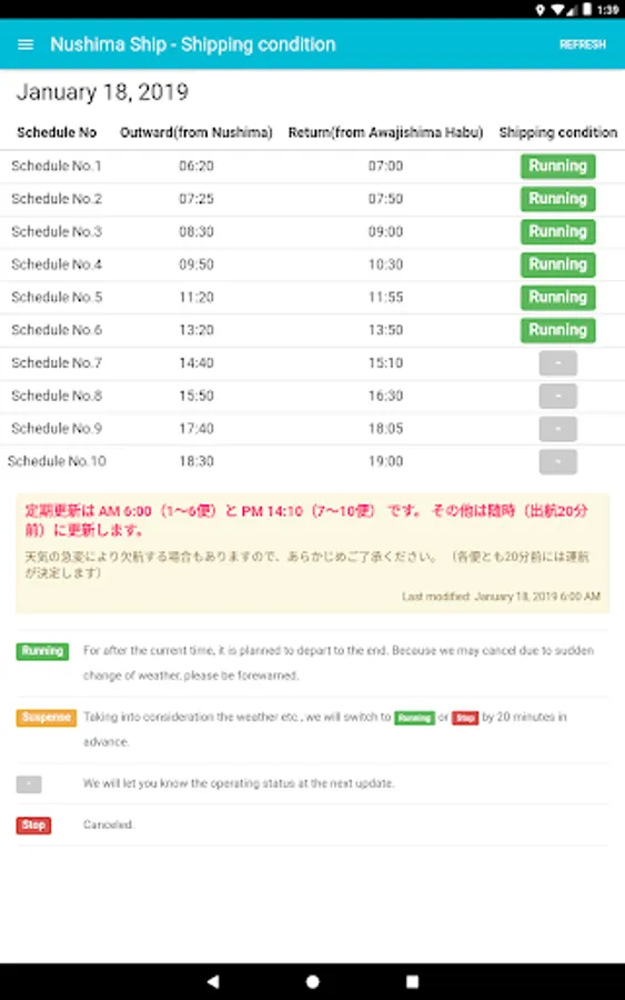 You can check the service status and schedule of the Nushima Kisen Ship with this app.