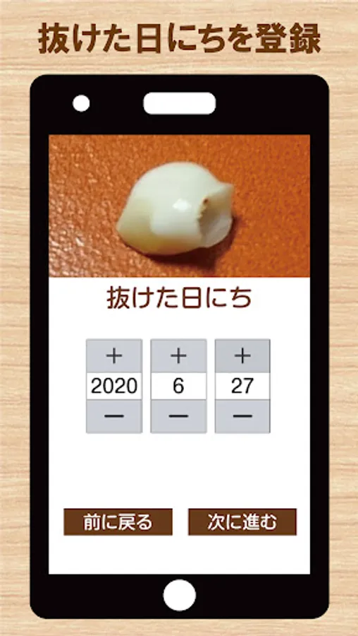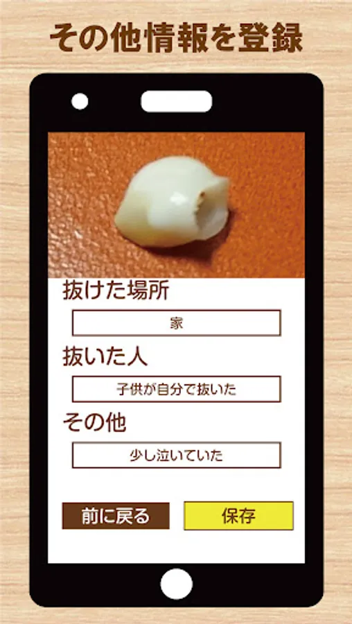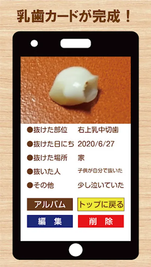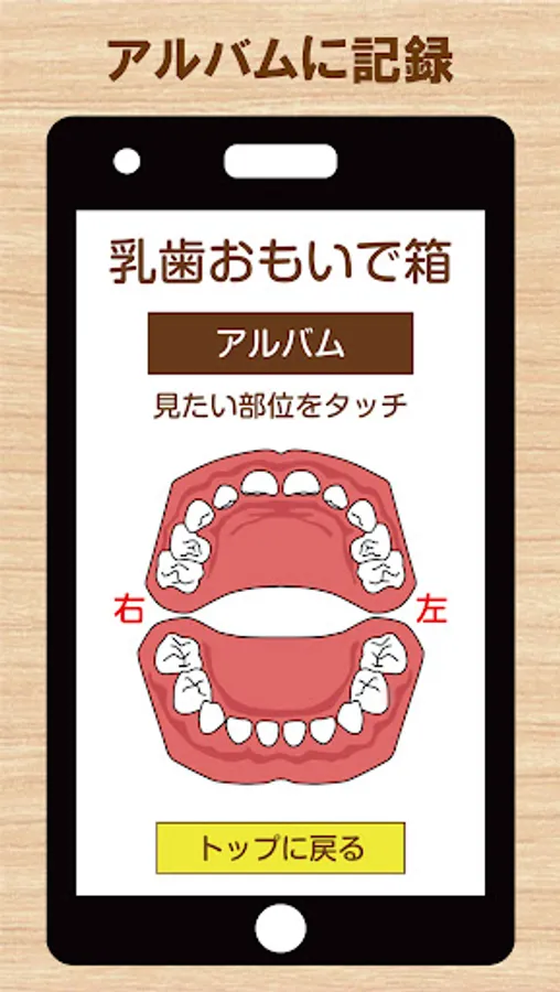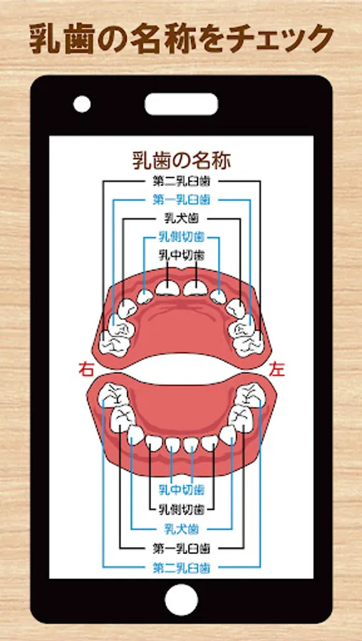 You can check the re-growth time and name of the milk teeth in the "milk tooth Omoide Box" (milk tooth case app).