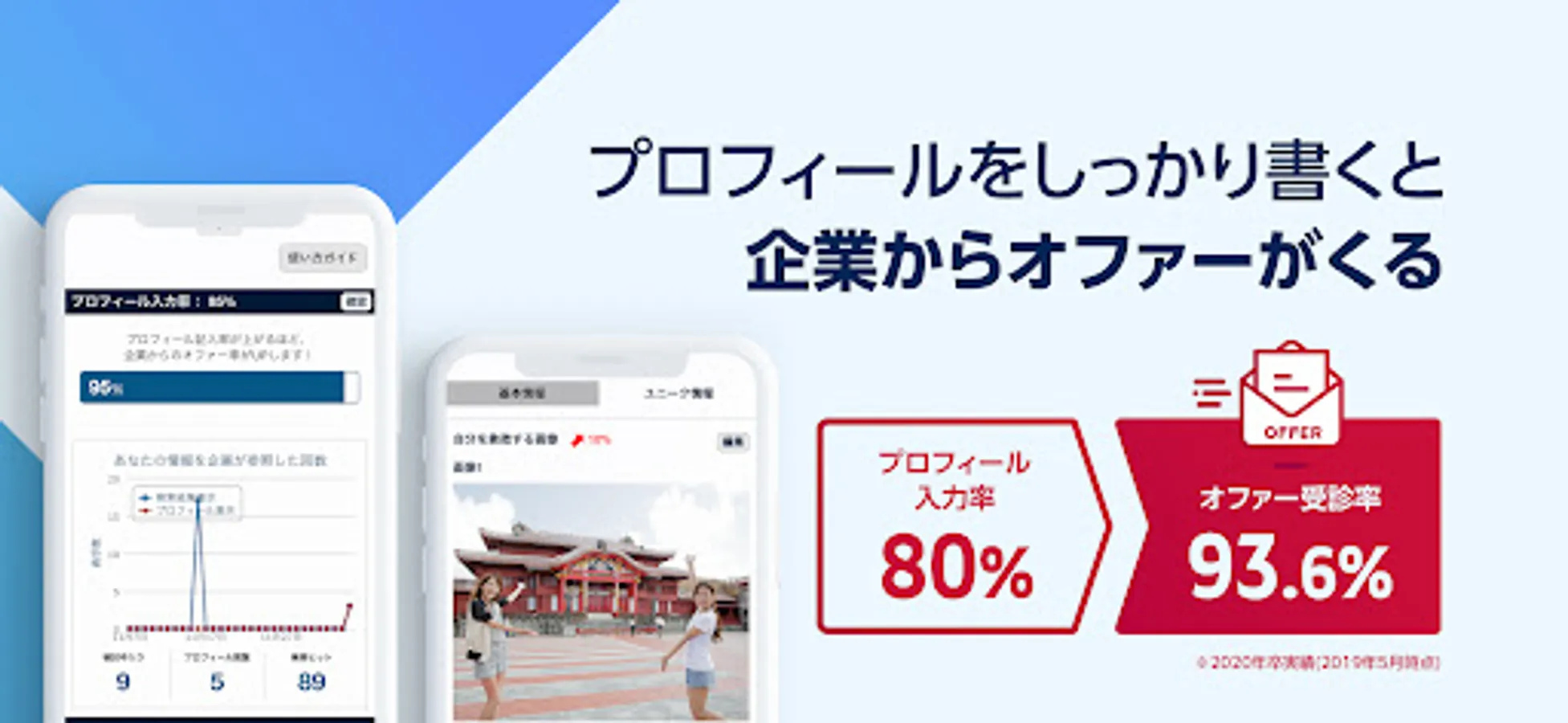 With OfferBox, you can express your experience and abilities that cannot be written on a resume (entry sheet) with photos, videos, and texts, and you will receive offers (scouts) from companies that require your experience and abilities.
