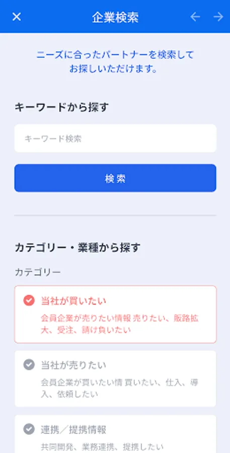 You can register / search information about want to sell, buy, and collaborate, and apply for business negotiations.
