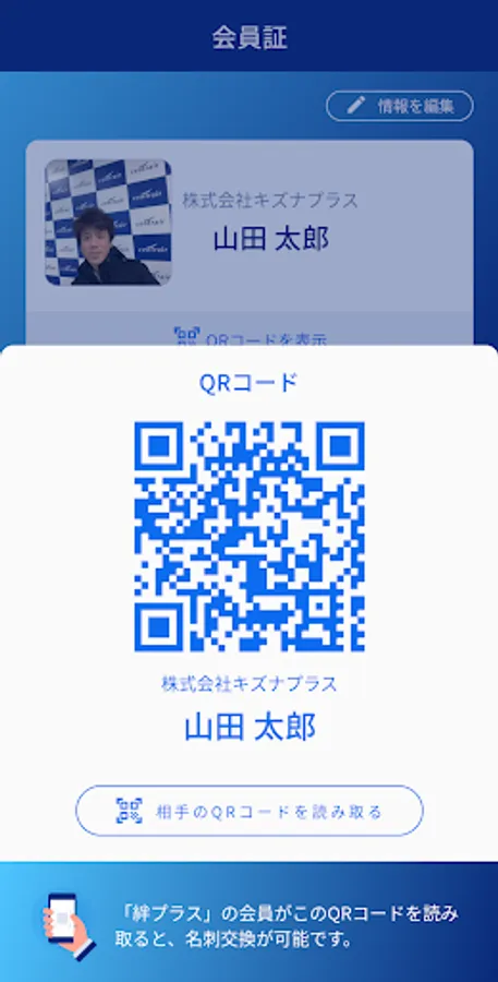 Read the QR code of the membership card with the app and exchange business cards without contact.