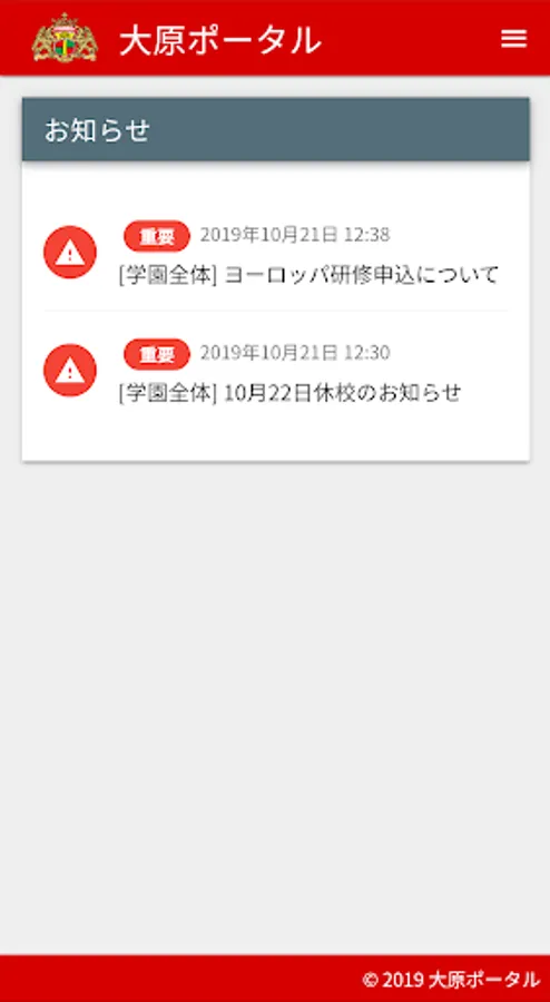 またログインすることで学校からのお知らせを受信、学生や保護者がスマートフォンでお知らせを確認できます。