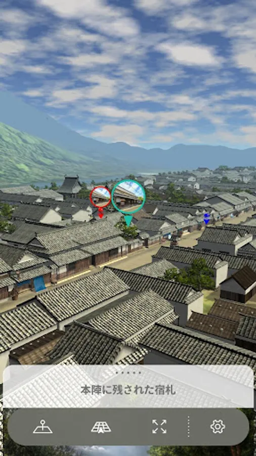 The townscape of the Edo period of Yakage-cho is reproduced on a 3D map. You can display your current location by GPS information. When you walk, you move on the 3D map.