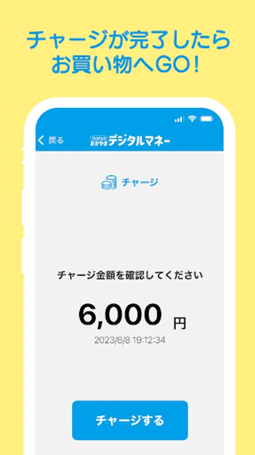 You can charge digital money by reading the QR code printed on the charge card with the app.