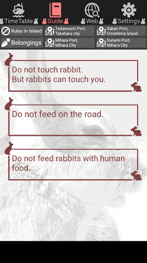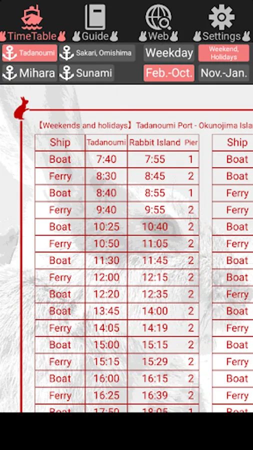 You can check the round-trip timetable for each port, and the next ferry operation will be notified by flashing.