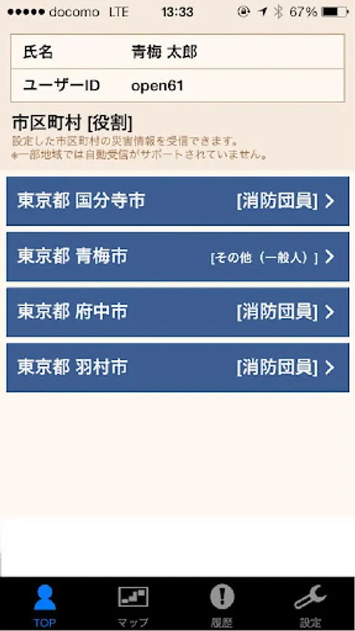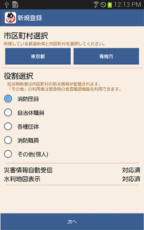 ・ 災害情報がプッシュ通知される自治体や、水利情報が登録