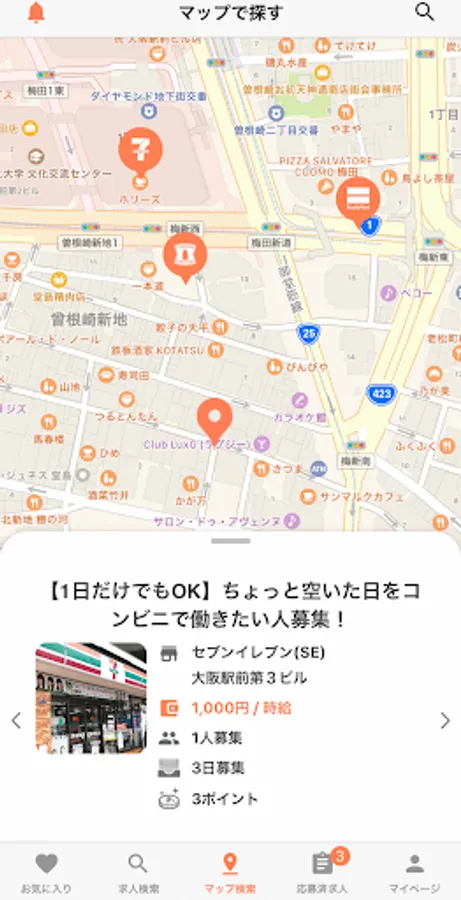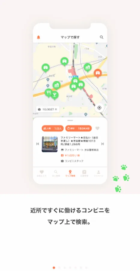 遠くの勤務地だと交通費がかかったり、電車の乗り継ぎが面倒ですが、ワンプラコンビニでは位置情報と連携させたマップ検索システムにより、家の近くや最寄りのコンビニでのお仕事が探せます。