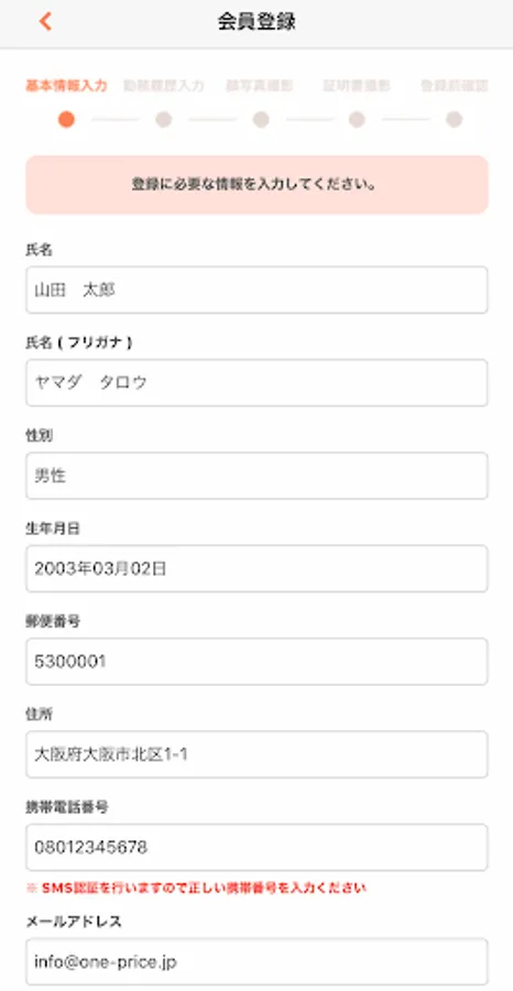 2、プロフィールを登録