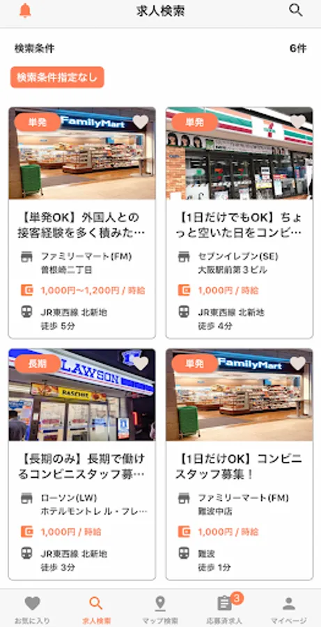 「ワンプラコンビニ」は単発(1日単位~)で、履歴書や面接なしで即日働けて、その場でお給与がもらえる単発バイトアプリです。