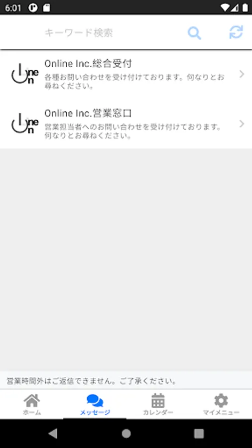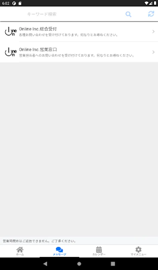 It is a dedicated message application of "Online Co., Ltd.", a company that conducts web production and system development mainly in Nagoya.