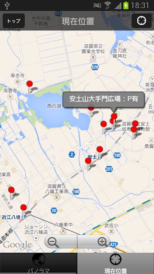 VR安土城が楽しめるポイントは、近江八幡市内12か所に存在します。
