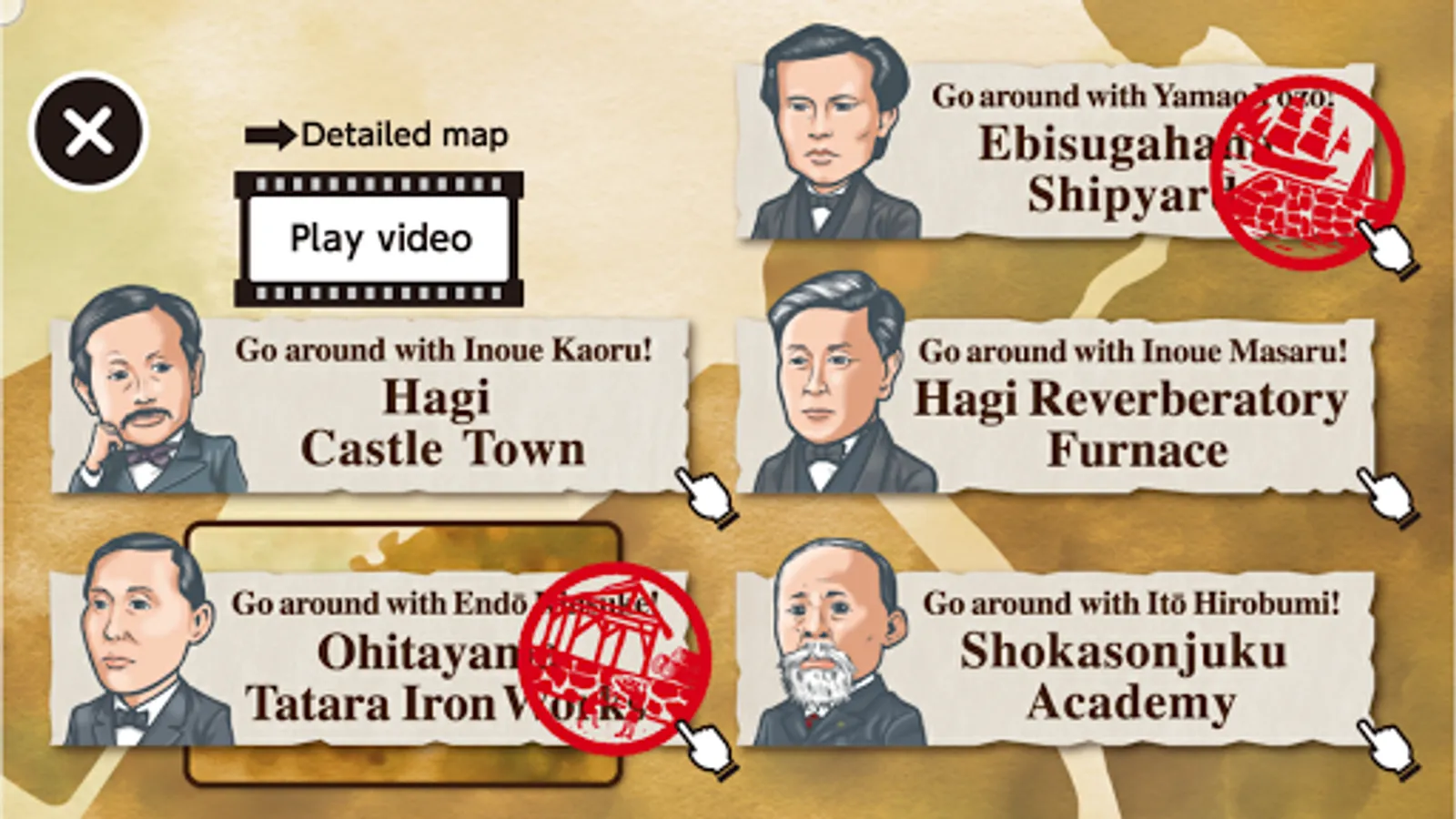Hagi Heritage (a Hagi City official application) is an application that takes you around the Hagi Reverberatory Furnace and the other four World Heritage Sites.