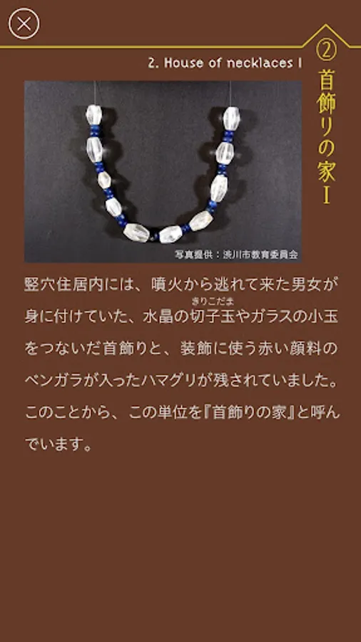 黒井峯遺跡の概要や発掘時の様子がわかる画像や説明を閲覧できます。