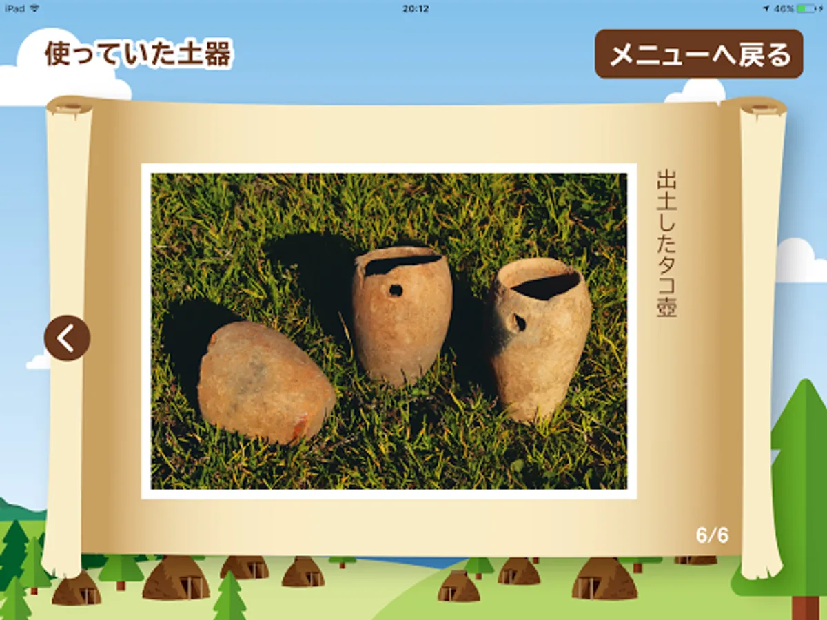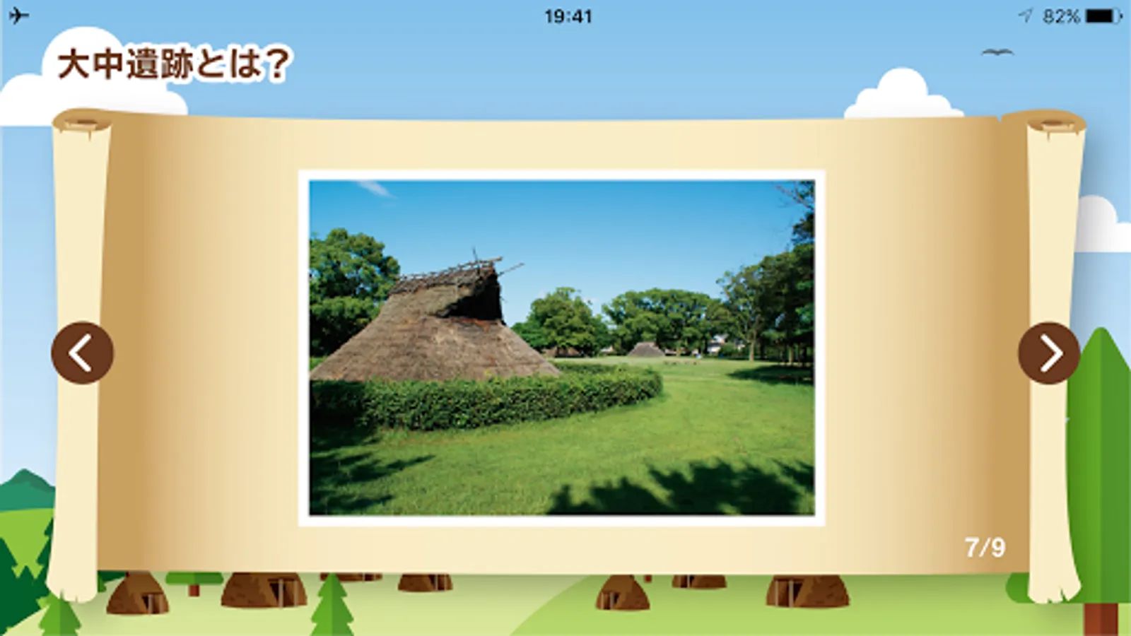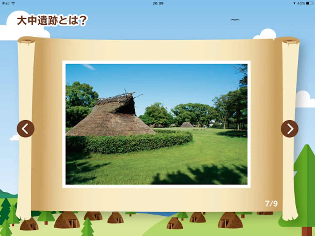 大中遺跡ARは、兵庫県加古郡播磨町にある大中遺跡(国指定史跡)で、古代住居跡を中心に、CGで再現された古代の生活風景をはじめ、集落の規模や竪穴住居、使っていた土器などの解説を見ることができるアプリです。