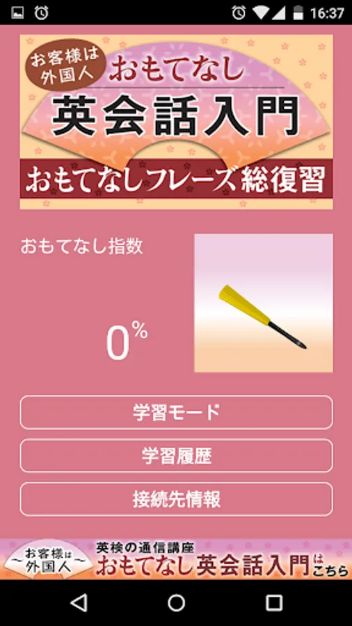 「おもてなし英会話入門 おもてなしフレーズ総復習」は、日本英語検定協会の通信講座「お客様は外国人 おもてなし英会話入門」の受講者のために、この講座に収録されたおもてなしフレーズの復習を目的としたアプリです。