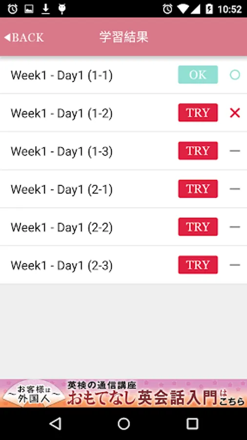 ・「学習結果」に×が表示された問題に直接再チャレンジもできます。