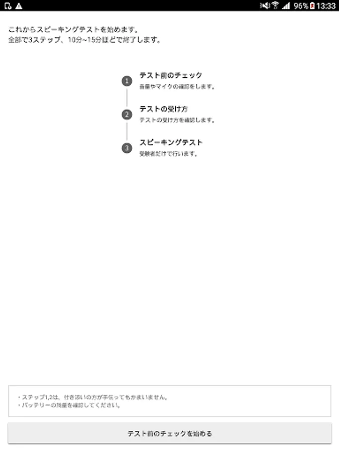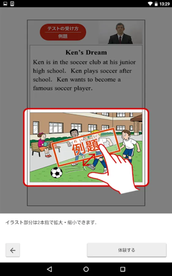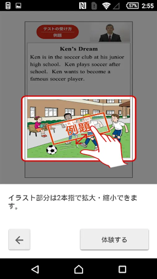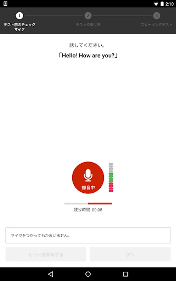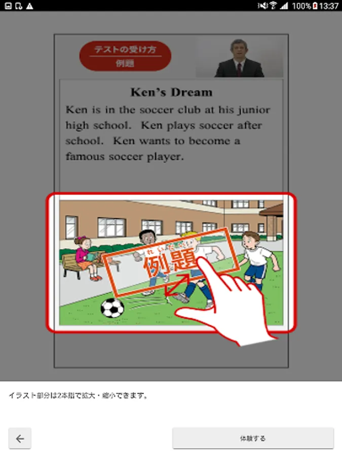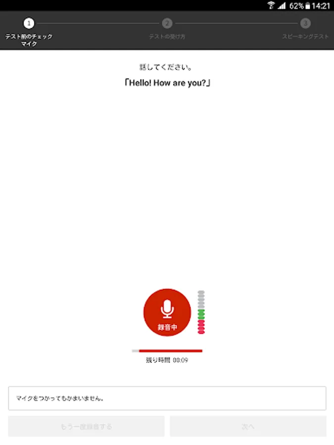 In the test reception, explanations will be given on the questions to be taken in the speaking test and difficult English words. In addition, there are functions to actually experience such as silent reading and reading aloud, so that you can understand the contents before the actual speaking test.