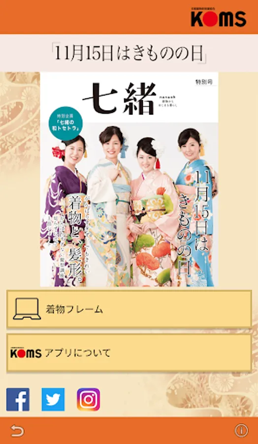 京都織物卸商業組合では、11月15日“きものの日”を多くの方々に知って頂き、きものを着用して頂く為の広報ツールとして「きものの日ブック表紙アプリ」を作成致しました。