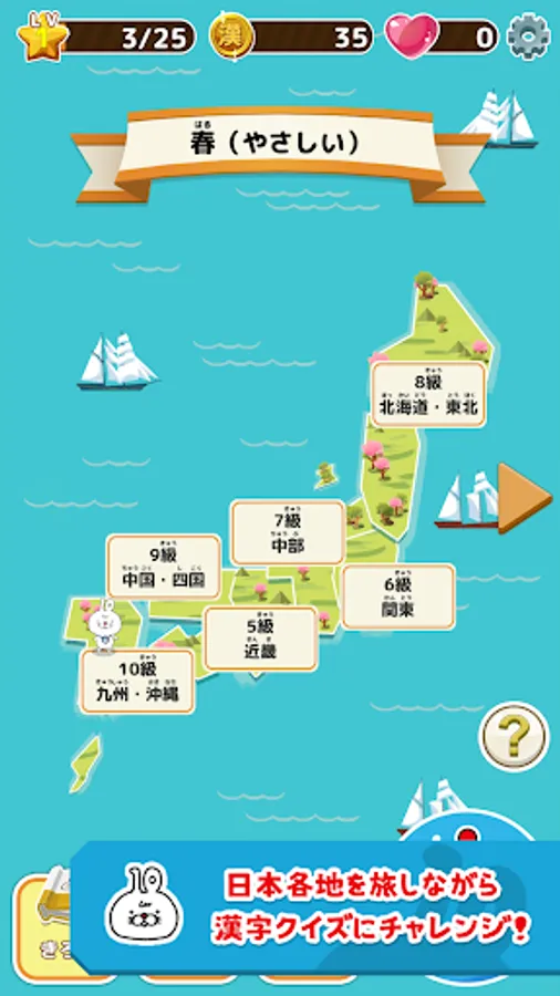 You can get new characters and Kisekae items by solving the Chinese character problem while traveling around Japan!