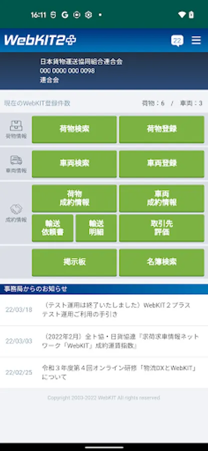 KIT (kit) is a transportation information network system for “request on demand” and “vehicle on demand”. With the rapid spread of broadband, high-speed, large-capacity, always-on, an ideal Internet environment can be easily introduced at low cost. The role of KIT is also becoming increasingly important as a means of efficient transportation and business using IT. "WebKIT" was developed as a system based on a new design concept, responding promptly to these environmental changes. By using the Internet, we have created a more efficient and usable network than ever before.