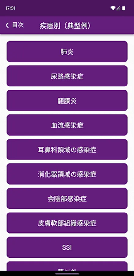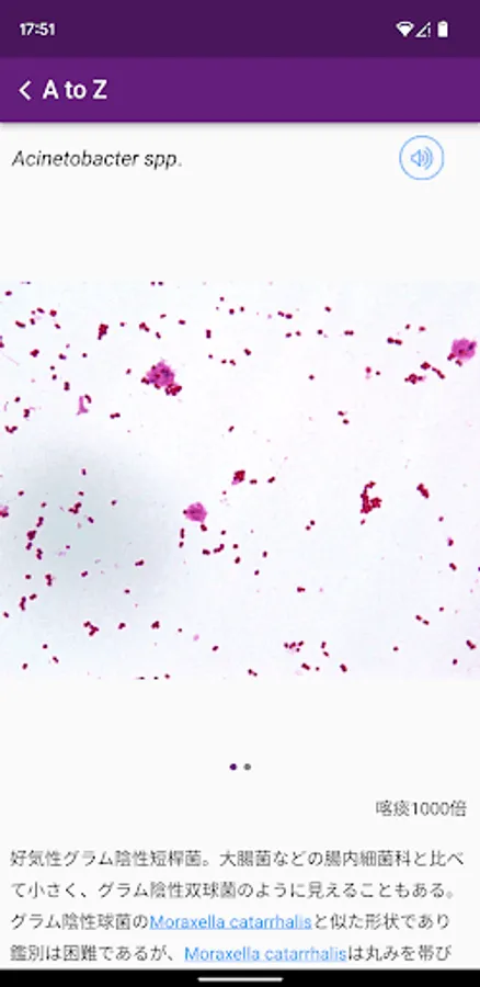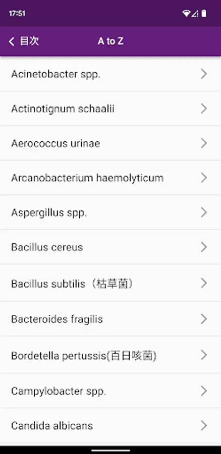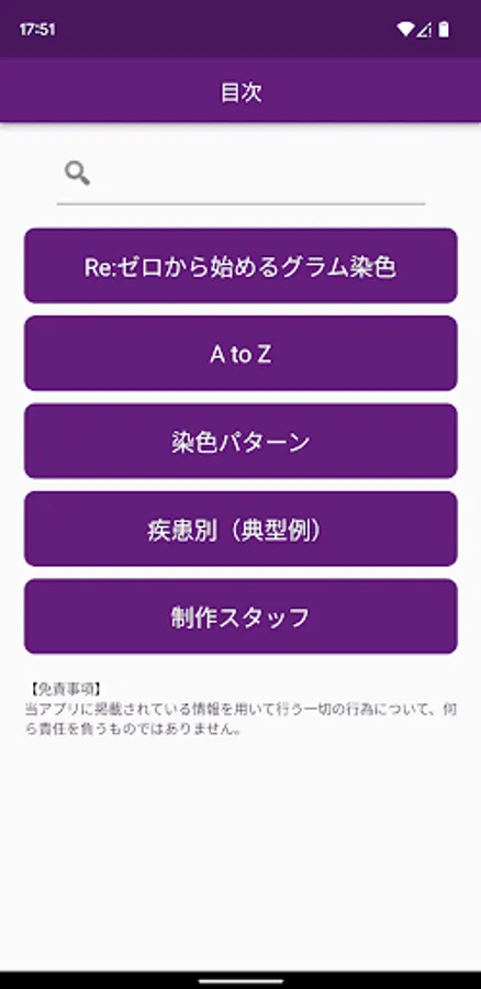 The search function from the bacterial name supports not only English but also Japanese, and category classification (by staining pattern, by disease) is also possible.