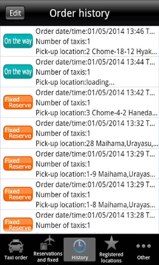 3. When you use this application to order a taxi, a pick-up charge of 320 yen will be added to the meter fare in the same way as when an order is placed by telephone.