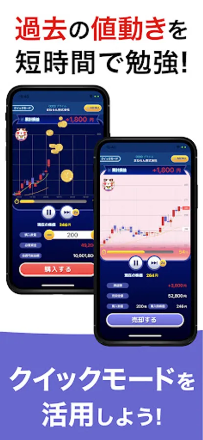Equipped with a quick mode that allows you to quickly experience and trade actual past stock price movements.