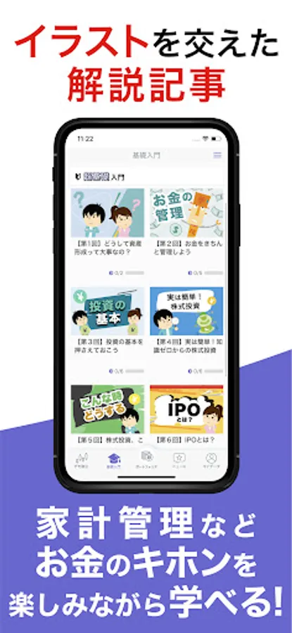 With commentary articles and quizzes with illustrations, you can enjoy learning about the basics of money, such as stock investment, asset formation, and household management.