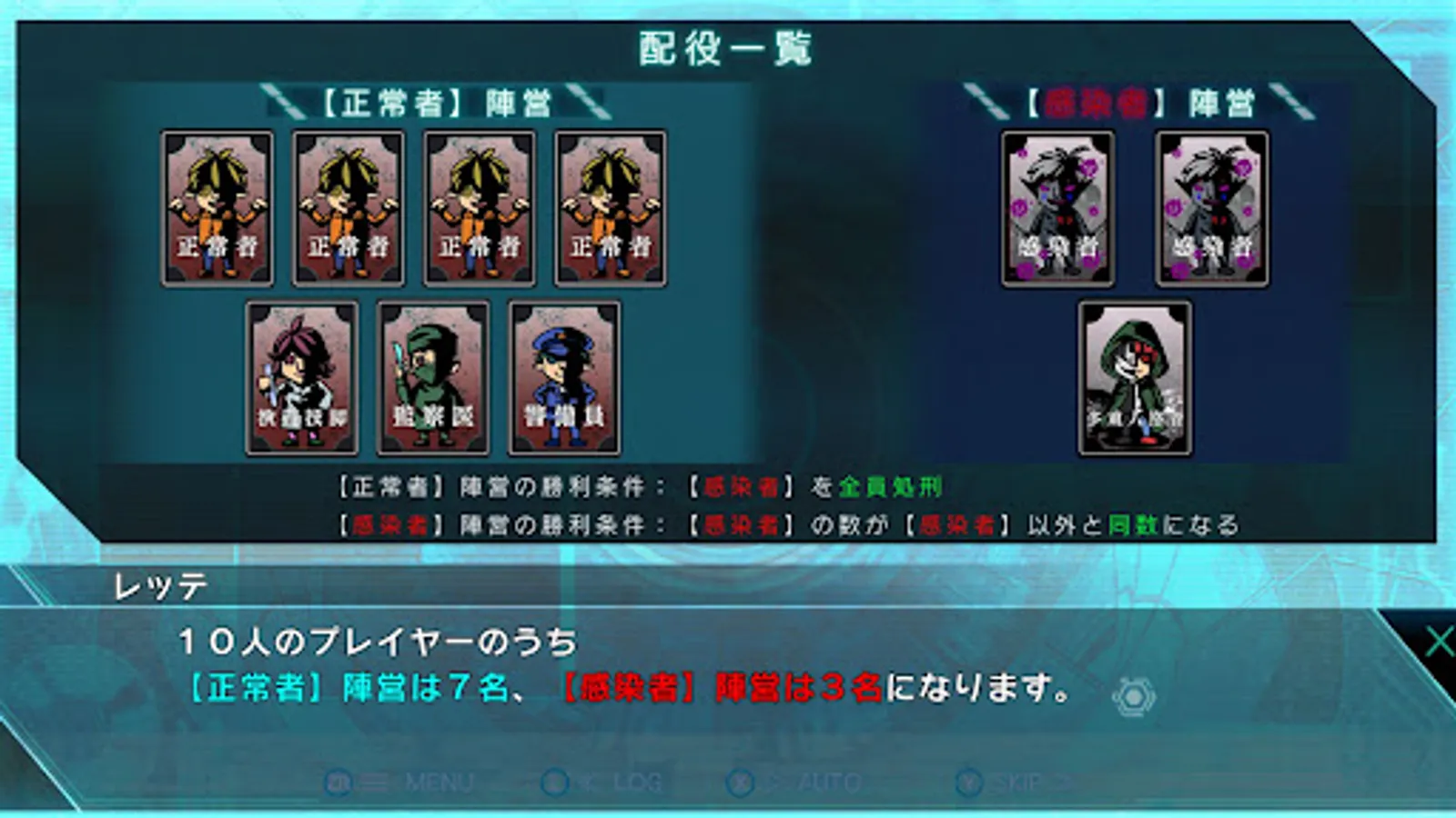 A medical secretary AI woman appeared and told them. Currently, medical resources are in short supply and cannot help everyone. For that reason, everyone will be asked to play the ``Infected Game'', which is very similar to the werewolf game, and the surgery will be performed from the top rankers.