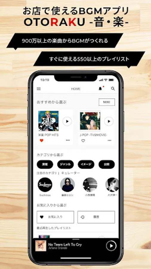 "OTORAKU -Sound / Raku-" can be easily used if you have a mobile terminal and a Wi-Fi environment. The domestic and foreign music labels that can be used are the largest commercial BGM apps in Japan. You can create a playlist that matches the store concept by yourself using the distributed music, so you can express your particular space.