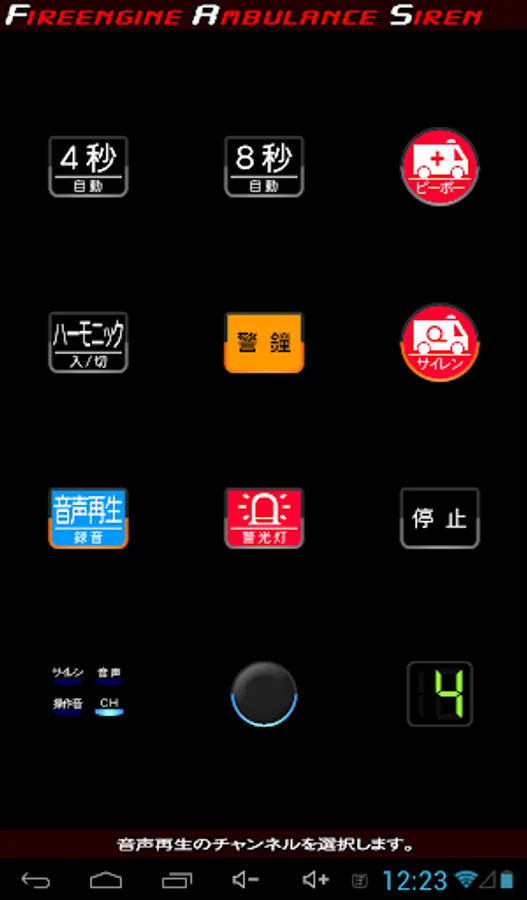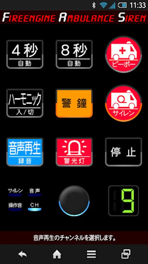 By tapping the dial button, the operation target "siren" → "voice" → "Beep" → and "CH" will change in the order.