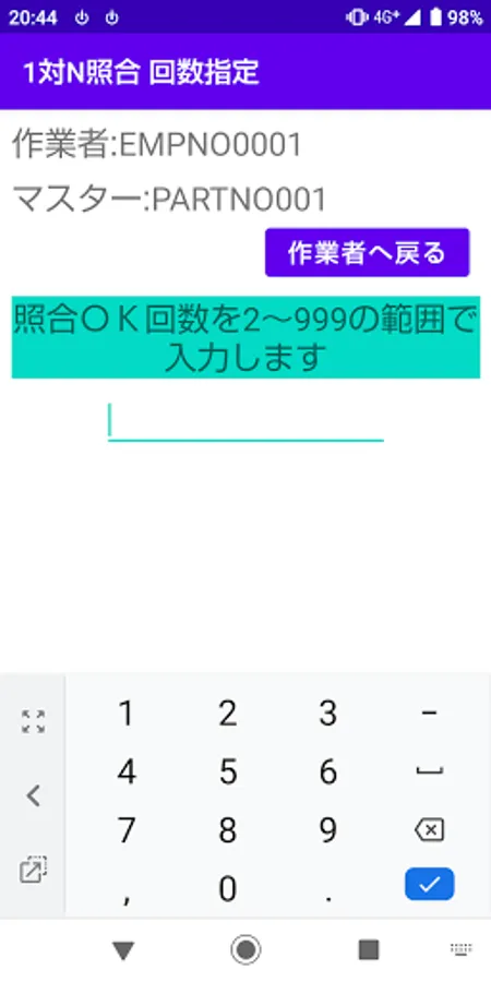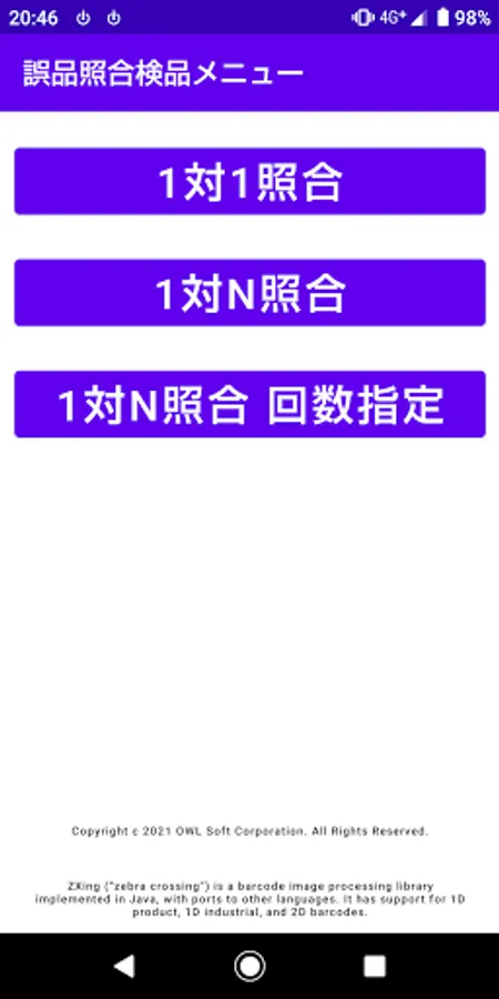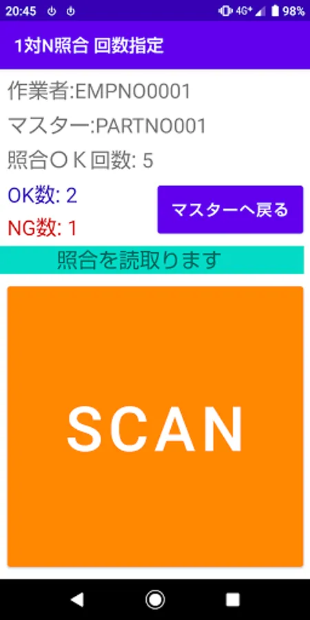 Scan barcodes, QR codes, etc., collate with the master, perform 1-to-1 collation, 1-to-N collation, and 1-to-N collation counts to master 1D / 2D codes such as barcodes and QR codes. And 1 to 1 inspection collation and 1 to N inspection collation are performed by scanning the collation target.