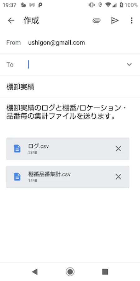 This is for inventory where you enter the warehouse code, shelf number / location, product number, and quantity, assuming that multiple warehouses are operating in free locations. Sends a file and log file that aggregates the quantity for each warehouse code, shelf number / location, and product number to an email or FTP server. After that, it is imported to the core system etc. as an inventory record.