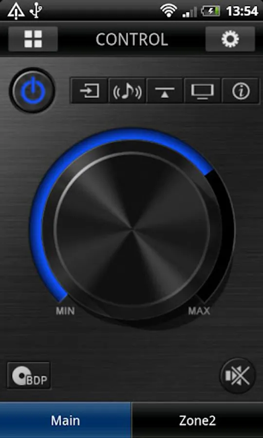 -"Control" not only covers the basic functions of the AV Receiver (power, volume, input selection, and sound and video modes, balance and tone, etc) for the main zone(To be able to power on your AV Receiver using iControlAV2012, it is necessary to Turn ON the "Network Standby" setting beforehand.) , but also for additional zones as applicable; even internet radio and media server content navigation is integrated . And more, Basic functions such as Play, Stop, Forward, and Reverse are supported for the Blu-ray Disc Player.